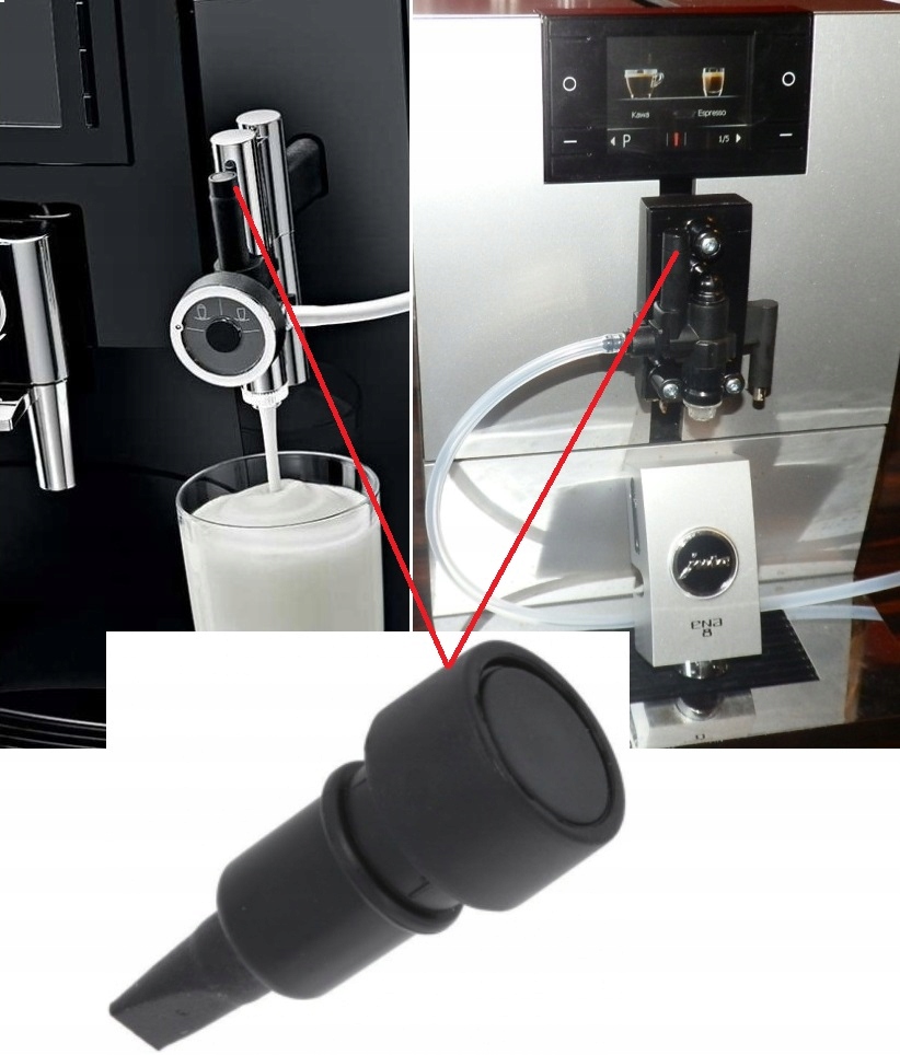 Przedmiotem sprzedaży jest fabrycznie nowy wężyk ssący, (rurka, przewód) + złączka (czarny nypel) do przystawki spieniającej mleka zwanej potocznie Cappuccinatore różnych typów pokazanych na zdjęciu nr 1.