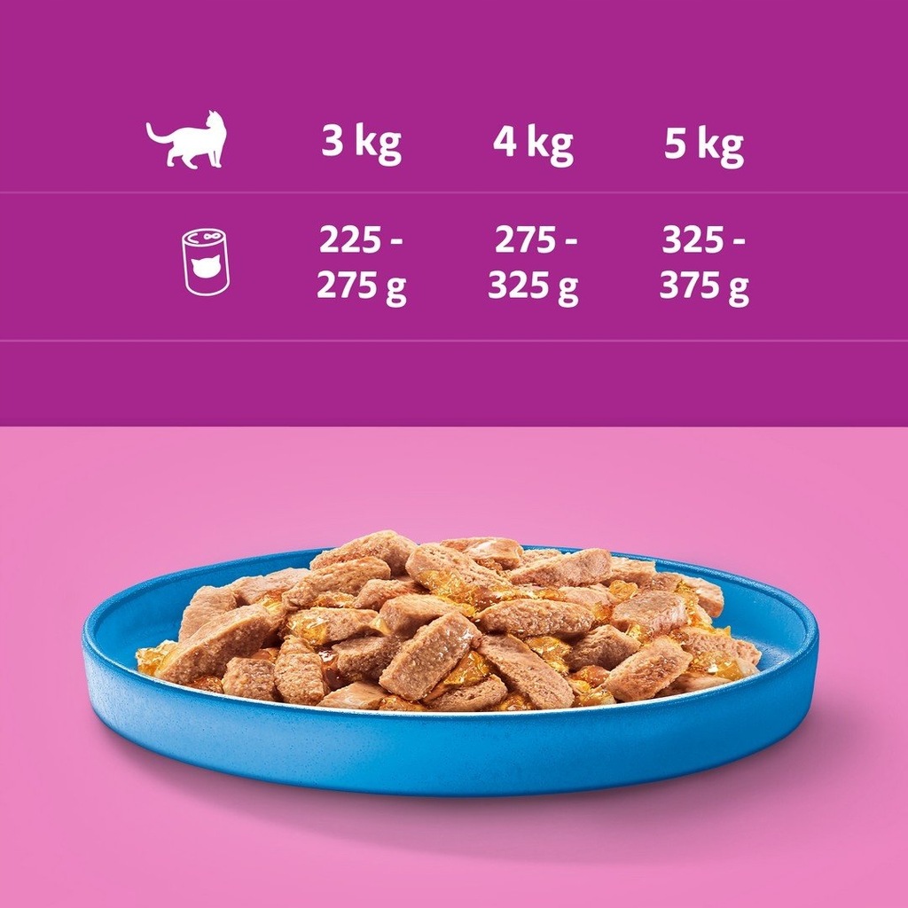 Uwzględnij okres przejściowy i dostosuj ilość karmy do potrzeb zwierzęcia. W przypadku kotów z nadwagą zmniejsz dzienną ilość.