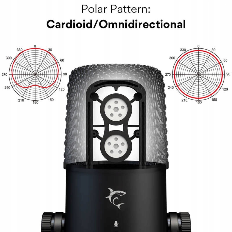 Mikrofon WhiteShark NAGARA wyposażono w podwójną membranę, każda o średnicy 14 mm. Posiada wbudowany przycisk umożliwiający na przełączanie ustawień między charakterystyką kardioidlaną na dookólną. Charakterystyka kardioidalna oznacza, że mikrofon jest najbardziej wrażliwy na dźwięk dochodzący od frontu. Pozwala to na wyizolowanie źródła dźwięku od szumu otoczenia. Przy charakterystyka dookólna mikrofon zbiera dźwięk ze wszystkich kierunków.