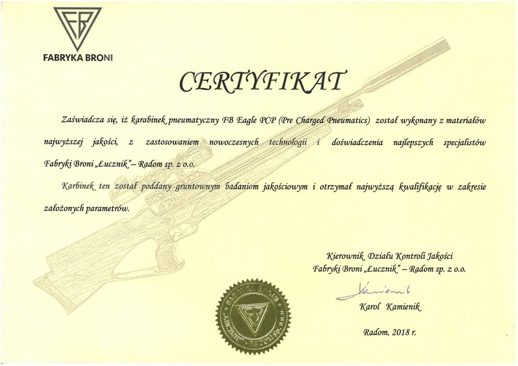 - Certyfikat jakości