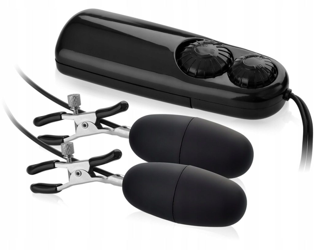 Niezwykle podniecające zaciski na sutki. Zaciski są w pełni dopasowywalne, dzięki specjalnym pokrętłom regulującym siłę nacisku. Każdy z dwóch zacisków posiada dołączony mini wibrator w postaci jajeczek. Dowolnie możesz dopasować częstotliwości i siłę drgań za pomocą pilota przewodowego. Urządzenie sprawdzi się również do pobudzania stref intymnych- łechtaczki u Pań, lub jąder u Panów. Bez wątpienie ten gadżet podgrzeje atmosferę w sypialni.