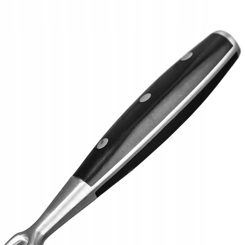 ✅ SOLIDNY - Wykonany z wysokiej jakości stali nierdzewnej. Rączka w kolorze czarnym. Posiada długie, stalowe ząbki.