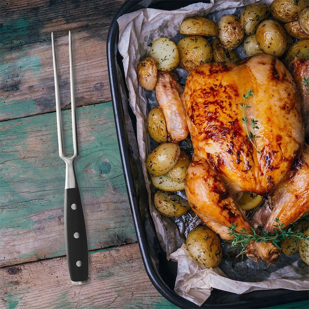 ✅ UNIWERSALNY - Widelec przydatny w każdej kuchni do obracania i nakładania mięsa. Świetnie sprawdzi się podczas grillowania.