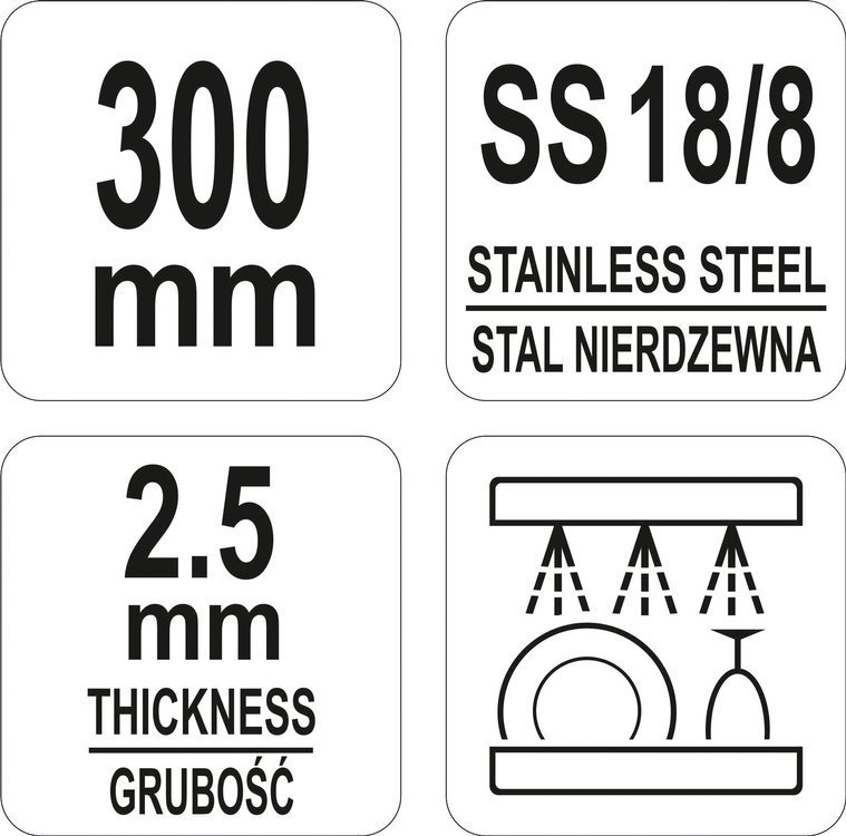 Wykonany z wysokiej jakości stali nierdzewnej 18/8 z profilu o grugości 2,5mm. Posiada wygodny metalowy uchwyt. Jego trwała i wytrzymała konstrukcja gwarantuje długą żywotność.