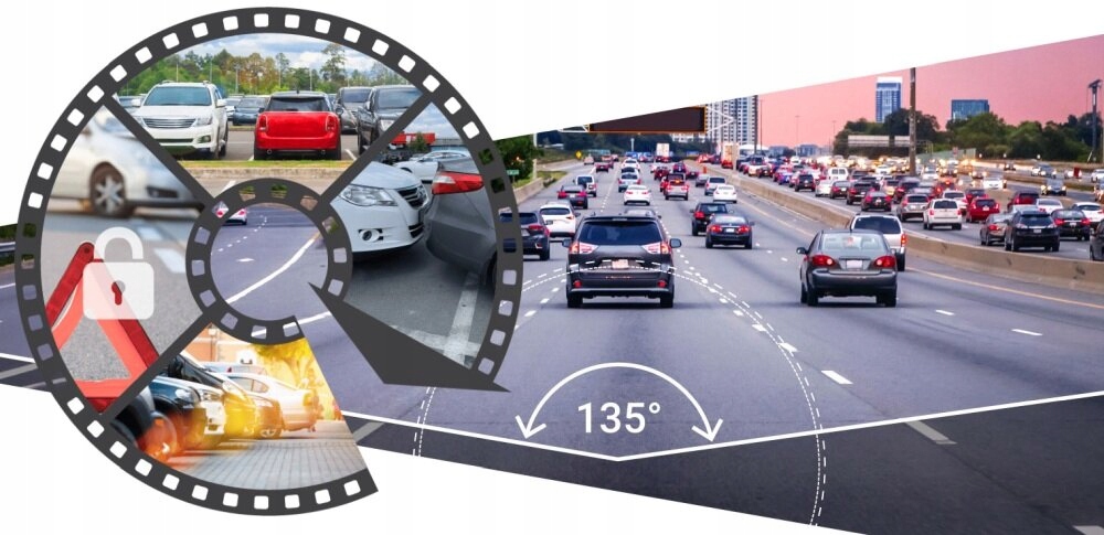 Pole widzenia wideorejestratora NAVITEL R35 wynosi 135°. Oznacza to, iż obiektyw urządzenia nagrywa drogę przed pojazdem, ale na nagraniu uwiecznione zostaną także obszerne fragmenty pobocza i chodnika z pieszymi i zaparkowanymi pojazdami.