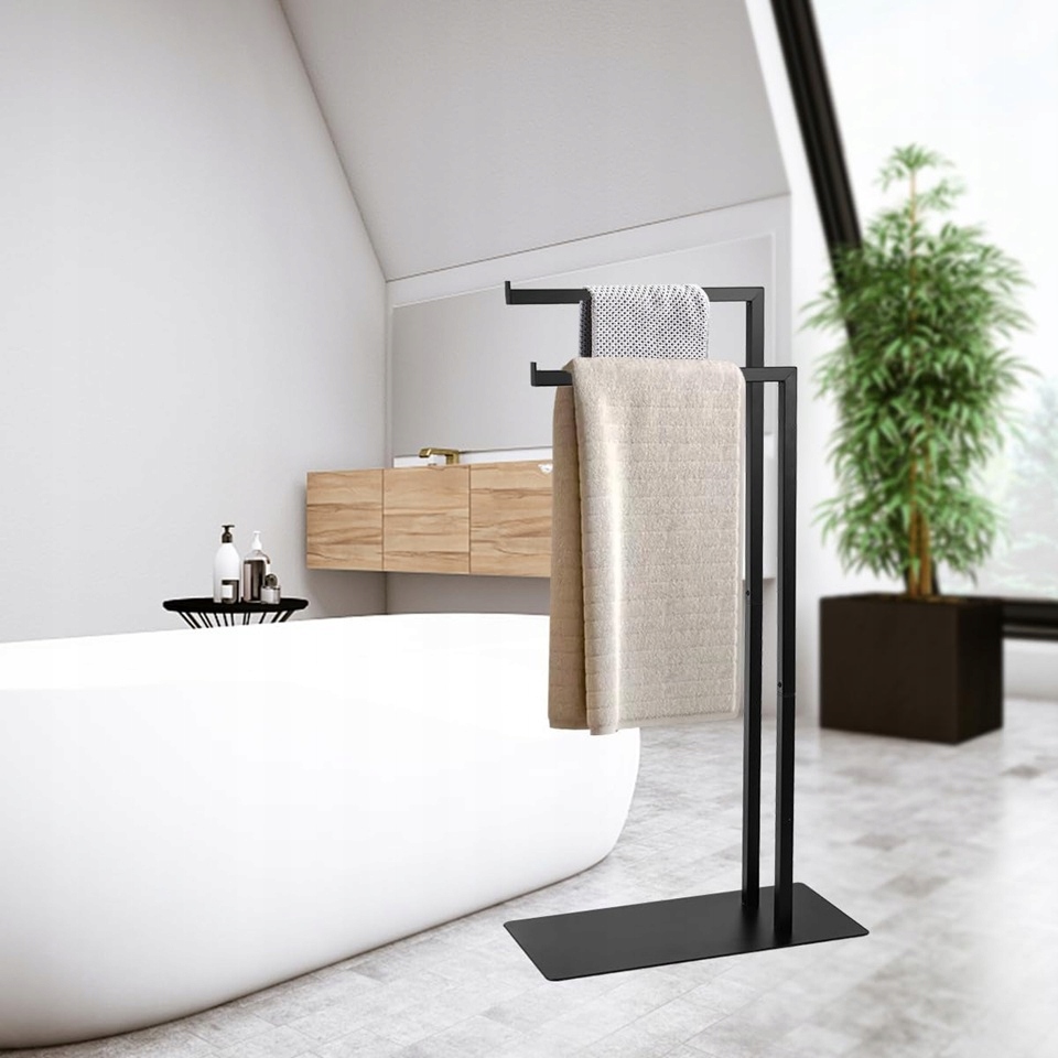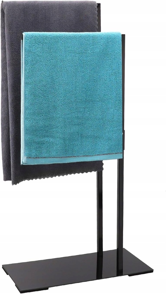 Wieszak wolnostojący na ręczniki AIQII czarny – bez wiercenia, stabilny