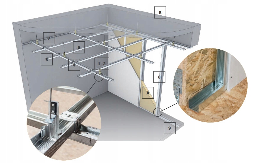 - Okładzin sufitowych – zapewnia solidne mocowanie okładzin, gwarantując estetyczny wygląd i trwałość zabudowy.