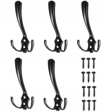 - AŻ 5 SZT. W KOMPLECIE – zestaw obejmuje nie jeden wieszak ścienny, ale aż 5 szt., dzięki czemu łatwiej zaprojektować swoje własne miejsce na odzież wierzchnią, które pomieści nie tylko rzeczy domowników, ale i gości.
