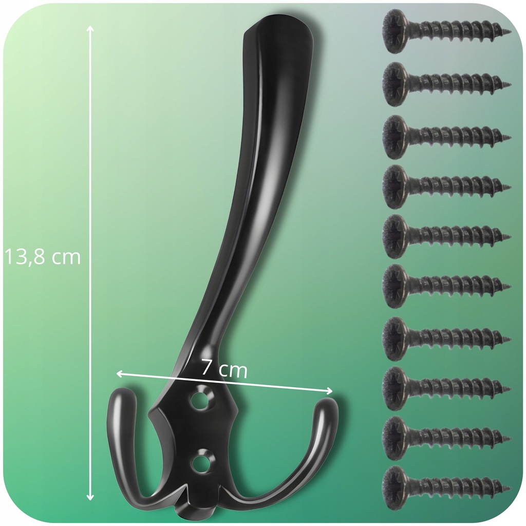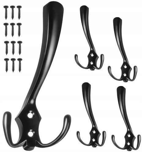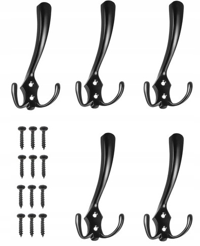 - SPECYFIKACJA – rozstaw otworów na śruby: 2 cm; materiał: stop cynkowy; kolor: czarny mat; ilość: 5 szt; ilość miejsc do powieszenia: 15; wymiary: 3 x 7 x 13,8 cm; waga: 0,271 kg; waga w opakowaniu: 0,341 kg.