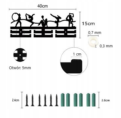 Wieszak przewidziany na co najmniej 60 medali, maksymalna waga 5 kg.