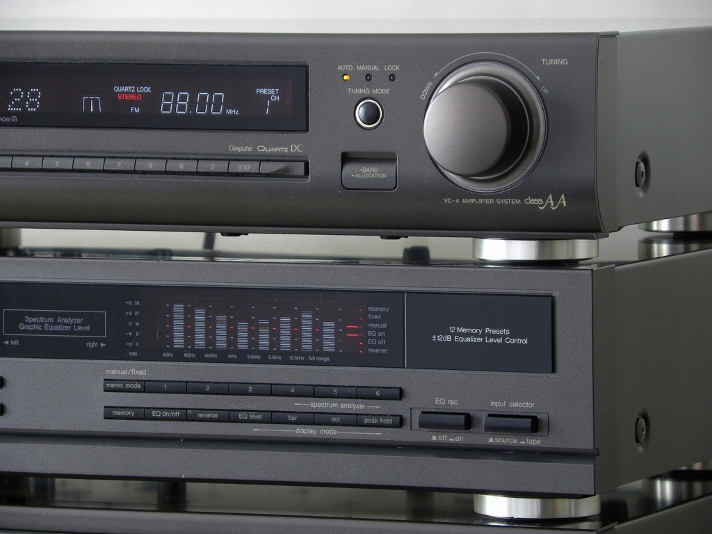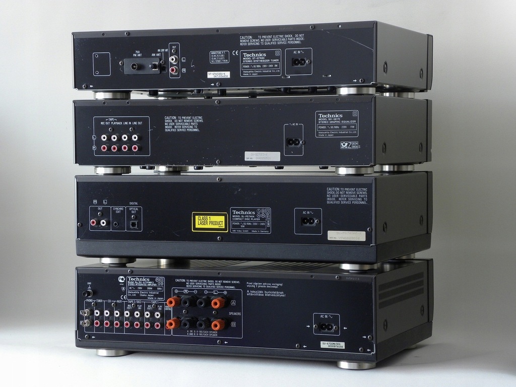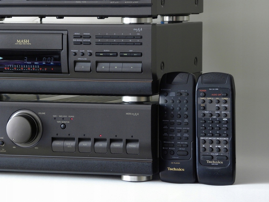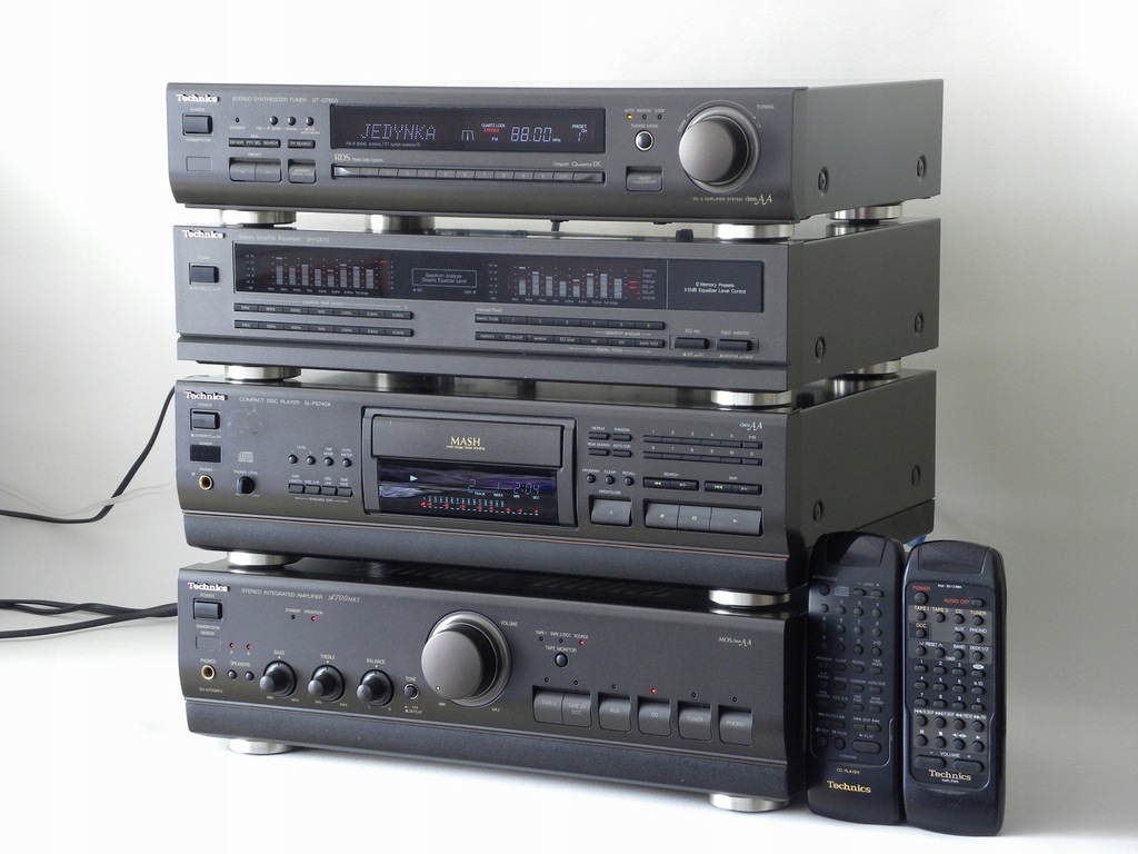 Do zaoferowania mam wieżę Technics złożoną z 4 segmentów. Wszystkie segmenty to już wyższe, cenione modele ClassAA. Zestaw tworzy wzmacniacz, odtwarzacz CD, korektor i tuner. Sprzęt jest w bardzo dobrym stanie wizualnym, a każdy element jest całkowicie sprawny. W komplecie jest oryginalny pilot sterujący całością, pilot do cd, przewody zasilające.