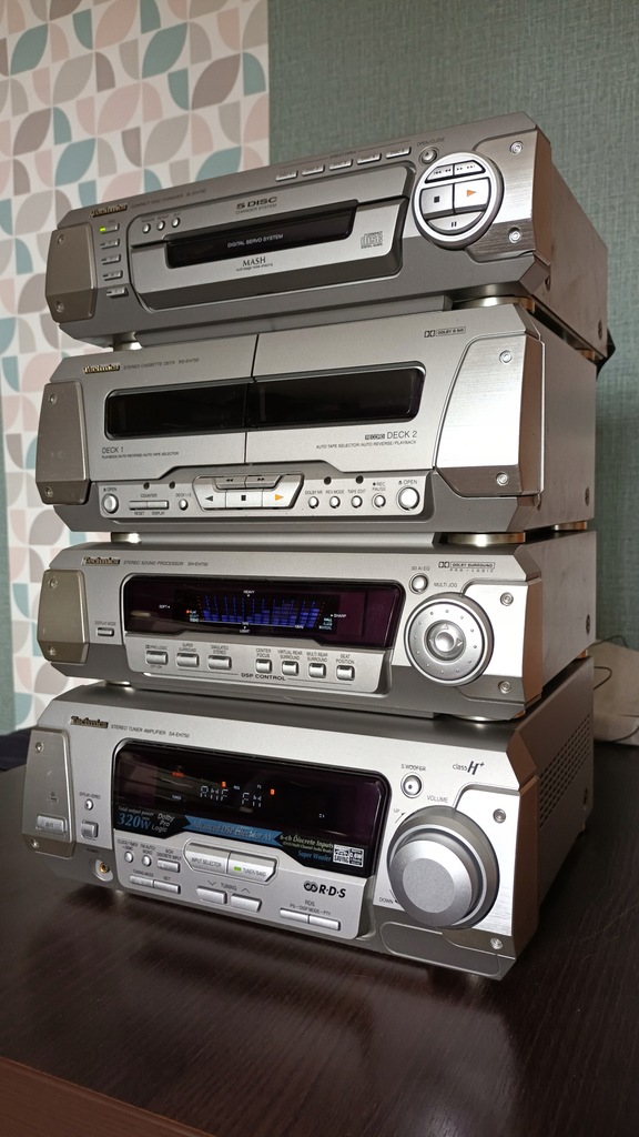 Witam!!!Na Sprzedaż Wieża Technics sa-eh750 w stanie jak na zdjęciach Sprawna odtwarzacz Cd czyta płyty oryginalne i cd-r szybko i bezproblemowo deck przewija odtwarza nagrywa wyszukuje utwory zdarzyło się że prawa kieszeń przy odtwarzaniu w prawo zatrzymała się i zrobił się stop tuner odbiera stacje w stereo I z rds na kawałku kabelka wszystkie wyjścia na głośniki sprawne nic nie przerywa itp. Brak pilota Polecam I Zapraszam na pozostałe Moje Aukcje Pozdrawiam!!!