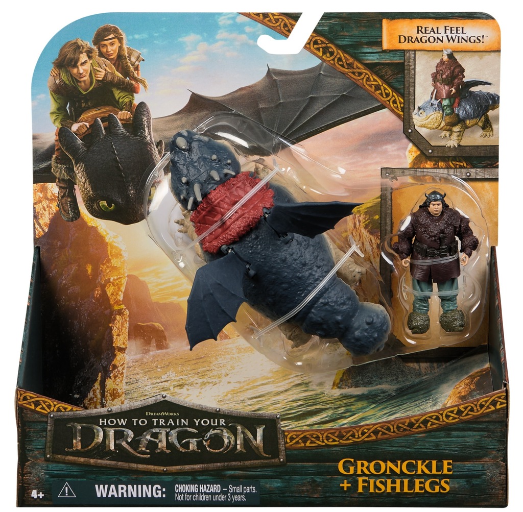 Twórz ekscytujące przygody z filmu Jak wytresować smoka z 7,5-centymetrową figurką Fishlegs i 18-centymetrową zabawką smoka Gronckle, z prawdziwymi smoczymi skrzydłami i ruchomymi kończynami