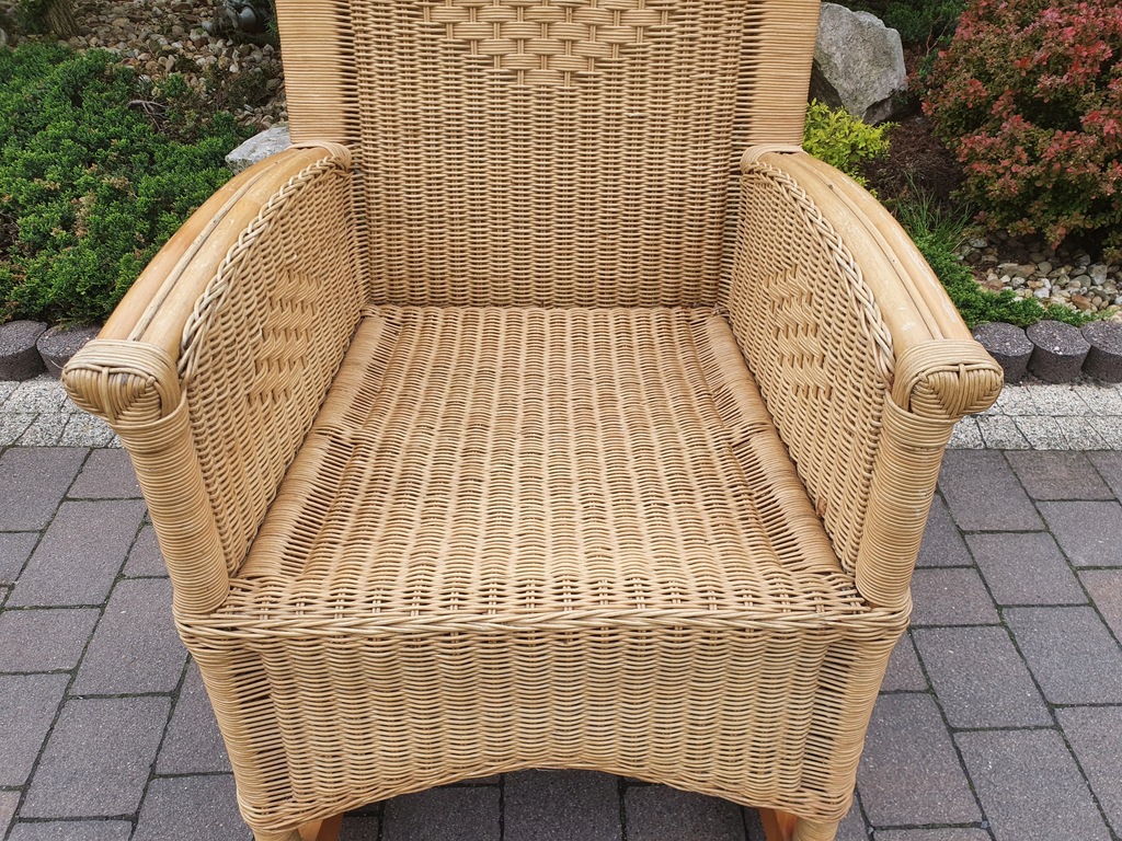 Oferujemy Państwu wiklinowy fotel na biegunach.