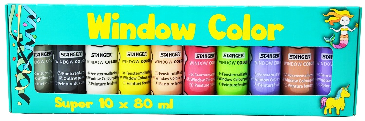 Zestaw farb do dekoracji szkła STANGER „Super" 10 x 80ml