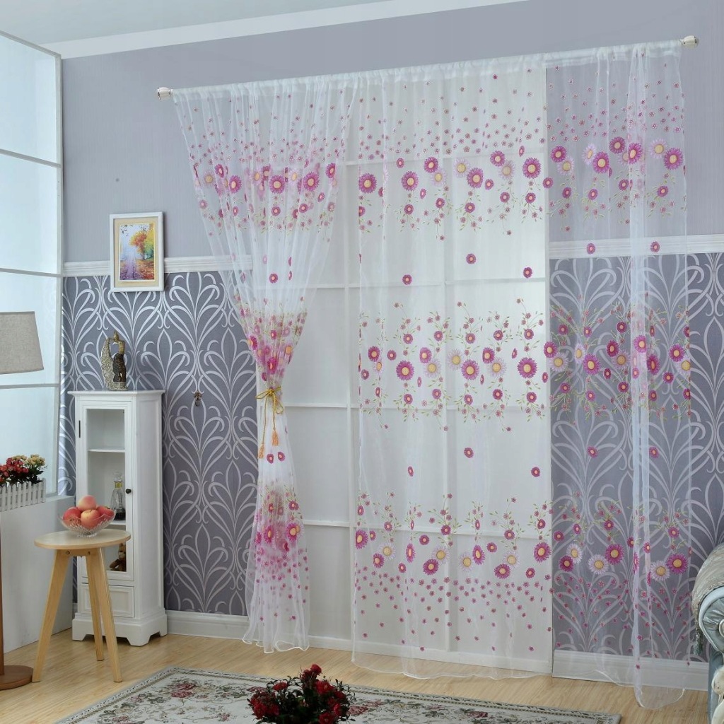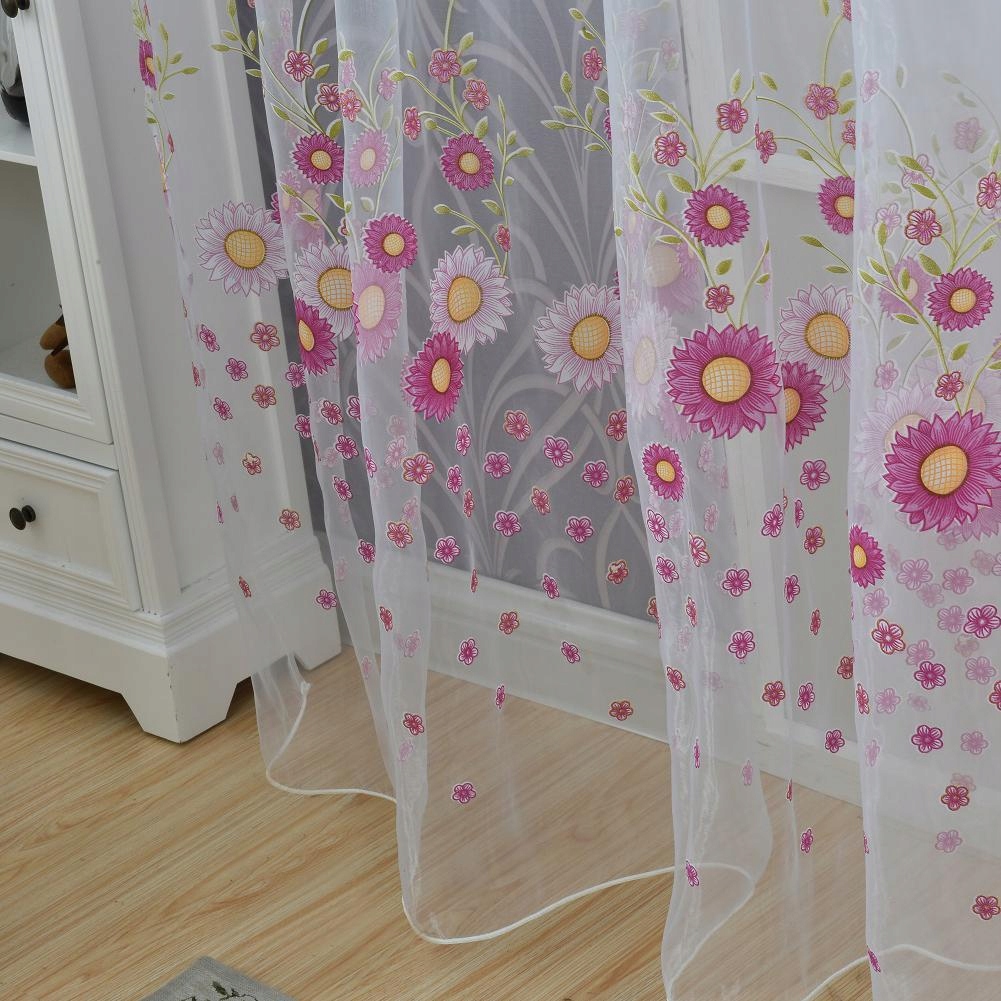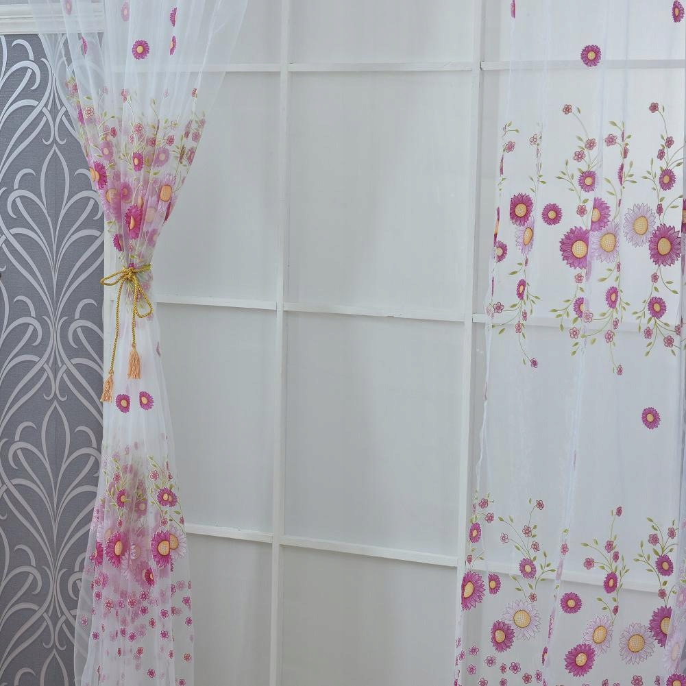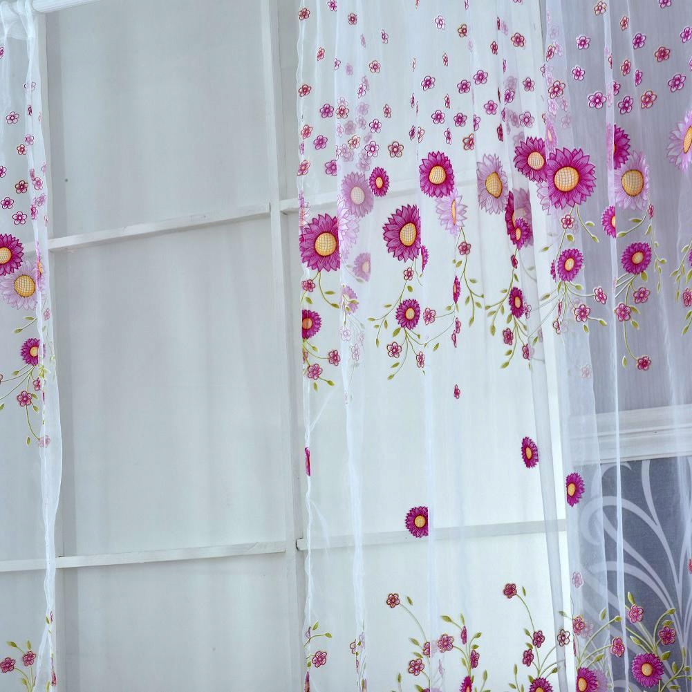 Window Yarn Curtain Sheer Drape Valance Panel Room Divider Sunflower Purple