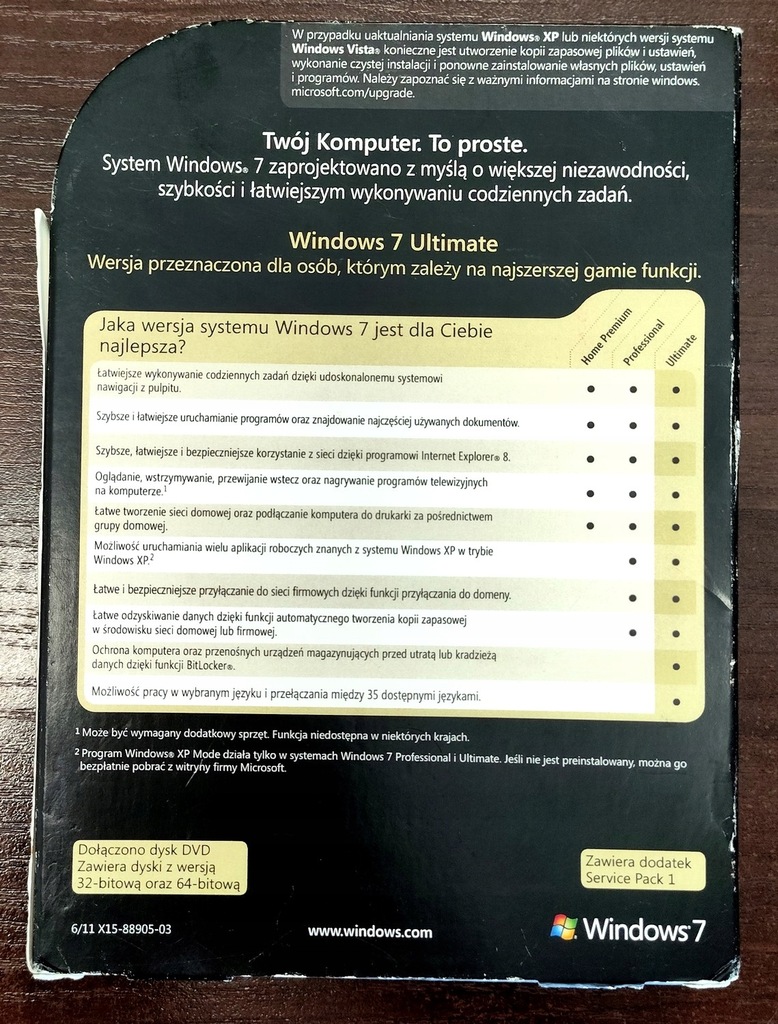 - Nazwa pakietu: Win 7 Ult Polish BOX DVD SP1