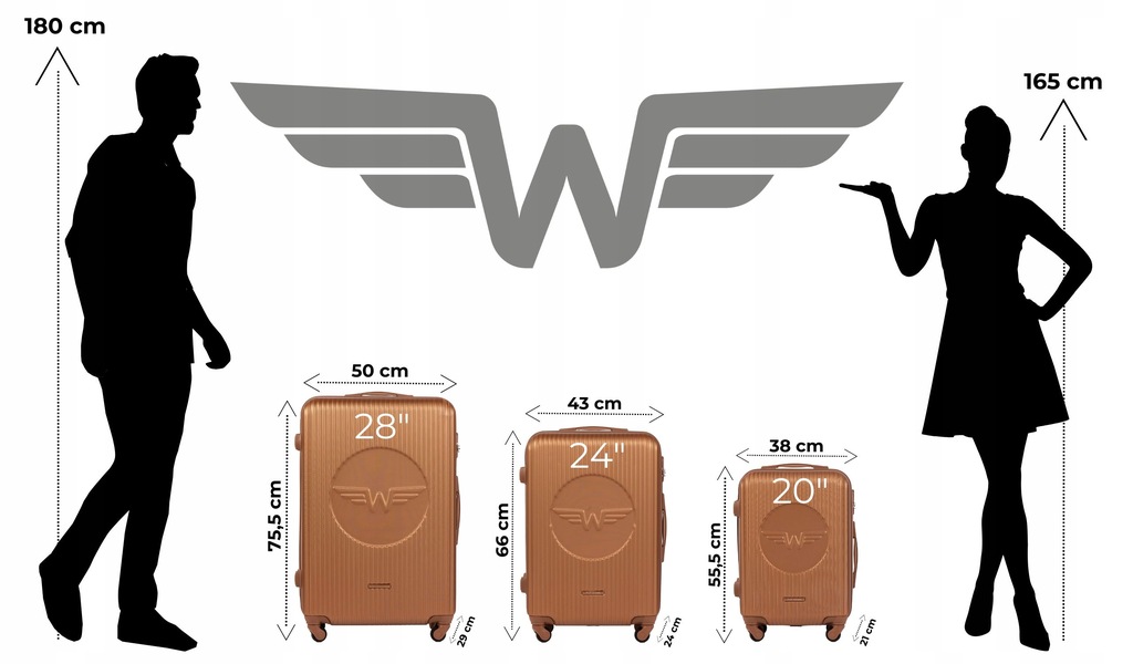 Wykonana z wysokiej jakości tworzywa ABS Plus, dzięki któremu możemy być pewni o należytą ochronę naszego bagażu. Klasyczna forma walizki została uzupełniona logiem WINGS umieszczonym zarówno na froncie jak i w dolnej części tyłu walizki.