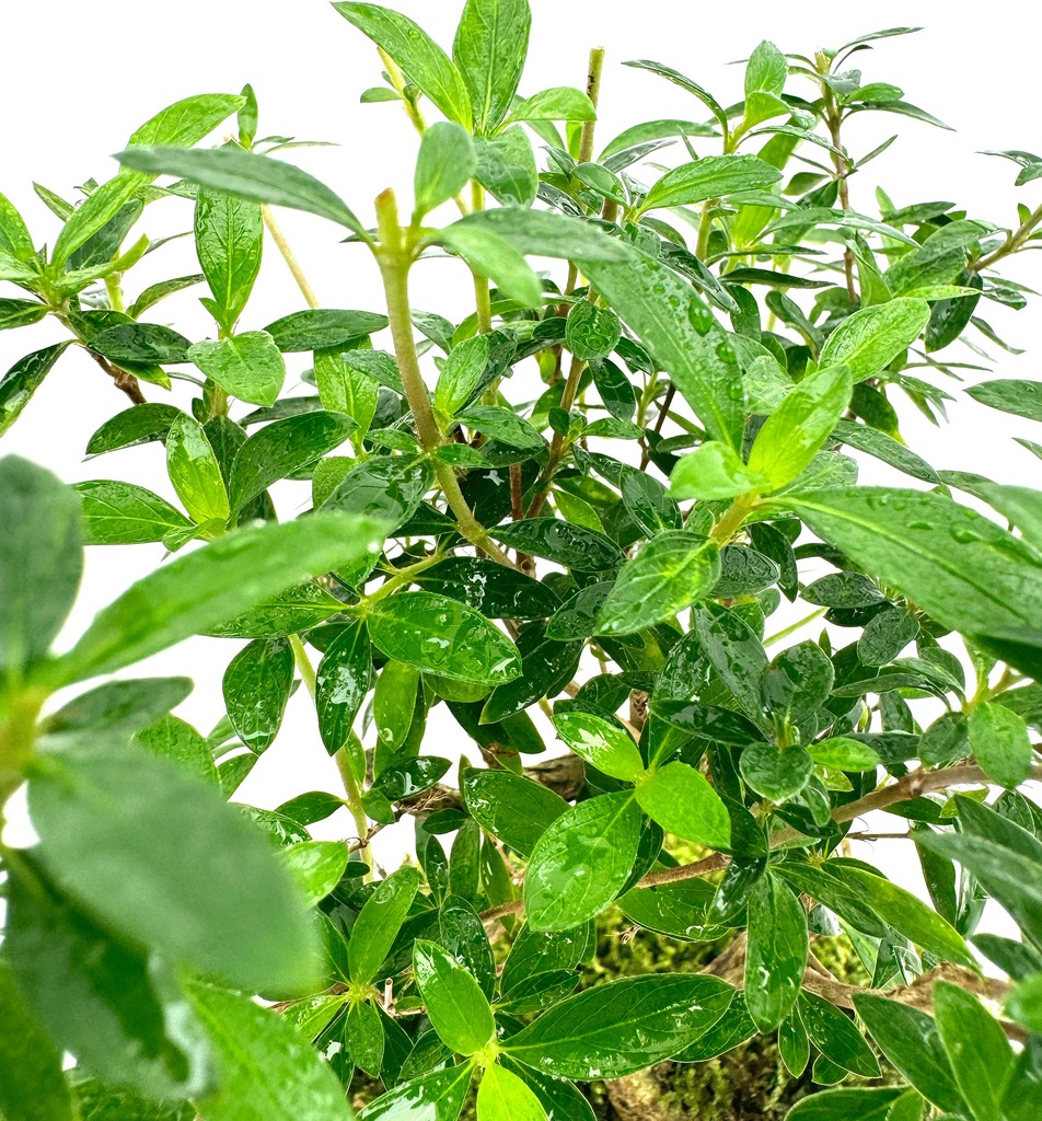 Serissa foetida, powszechnie znana jako Drzewo Tysiąca Gwiazd, jest centralnym elementem tej wyspy Bonsai. Jest znana ze swojego zwartego wzrostu, miniaturowych liści i mnóstwa drobnych białych kwiatów, które pojawiają się przez cały rok, przypominając konstelację gwiazd. To bonsai, uprawiane w naszym opatentowanym systemie Insula, korzysta ze specjalistycznej mieszanki substratów, zakotwiczonej w naszej technologii StickySoil® i wspartej podstawą maty kokosowej. Zapewnia to optymalną wilgotność, składniki odżywcze i przepływ powietrza, dzięki czemu pielęgnacja tego delikatnego bonsai jest prostsza i bardziej satysfakcjonująca. Każde bonsai Drzewo Tysiąca Gwiazd jest świadectwem piękna natury i kunsztu uprawy bonsai, zaprojektowanego tak, aby rozwijać się w kontrolowanym środowisku Twojego domu lub biura.