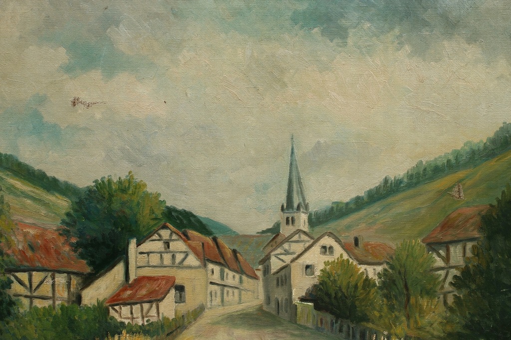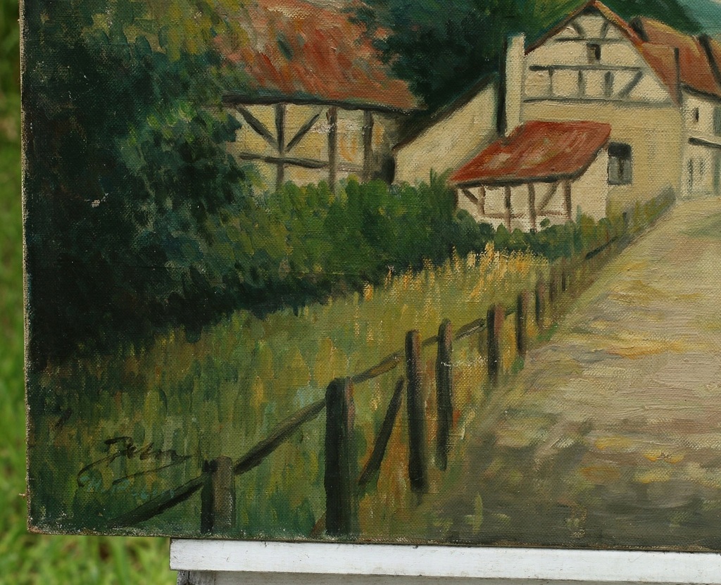 PRZEDWOJENNY OBRAZ OLEJNY PRZYWIEZIONY Z POLSKI PRZEDSTAWIAJĄCY PIĘKNĄ SCENĘ!