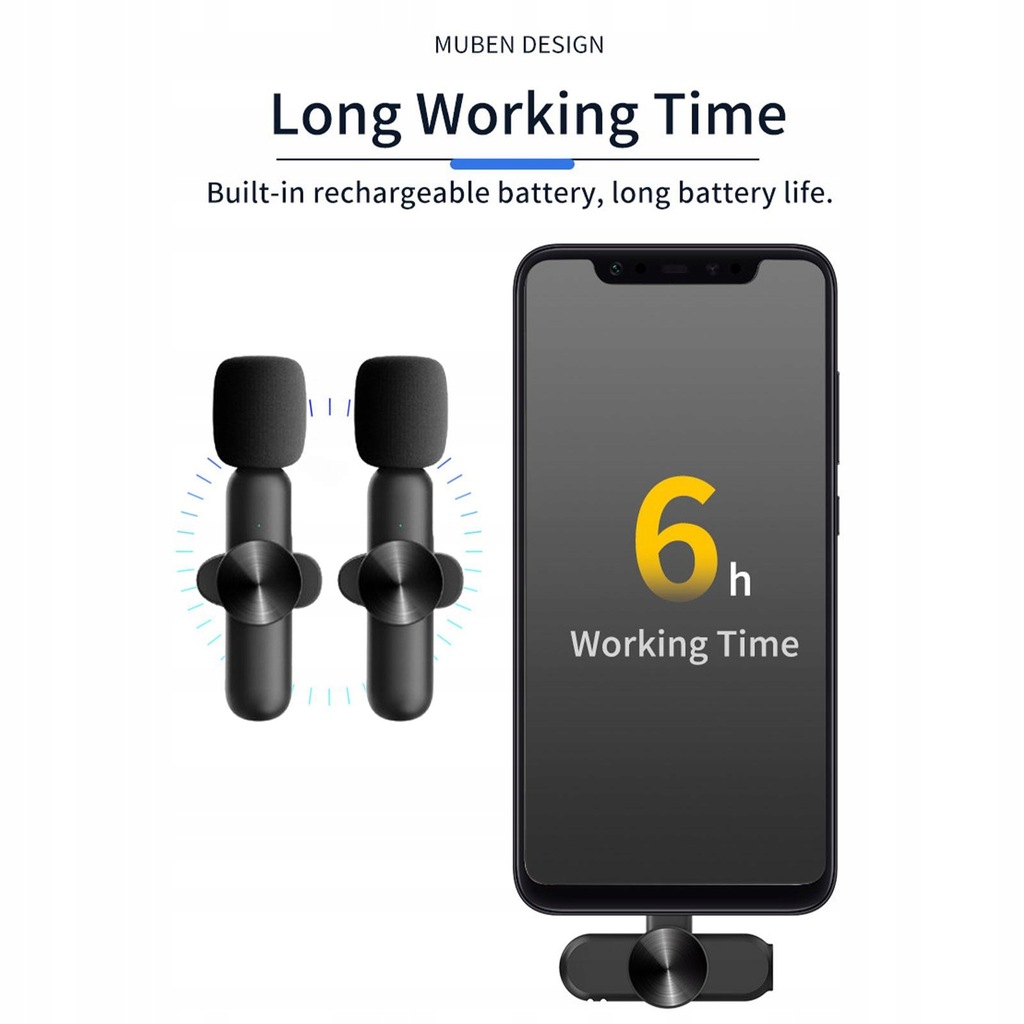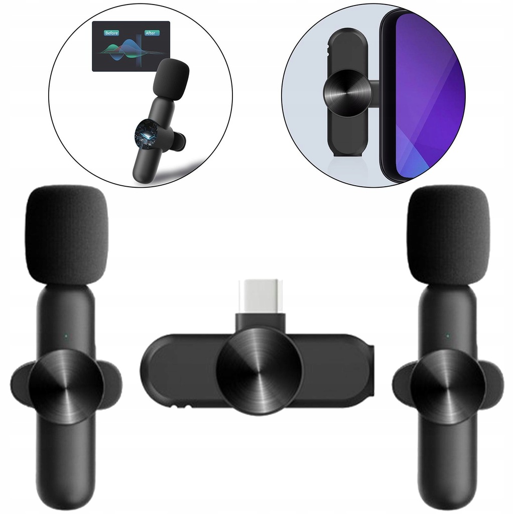 Wireless Lapel Mic Type-C Auto Connect for Live Stream Audio Video Recording 2 Mics