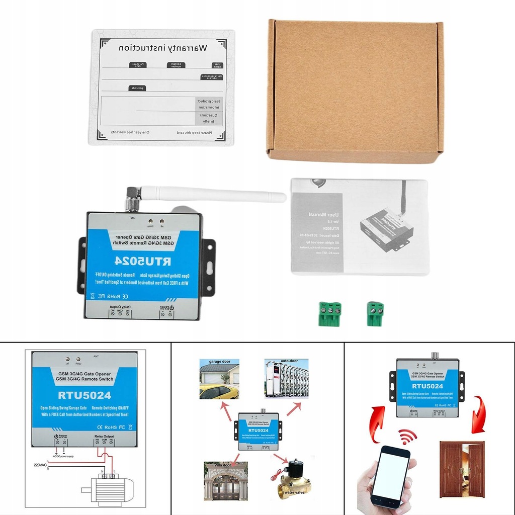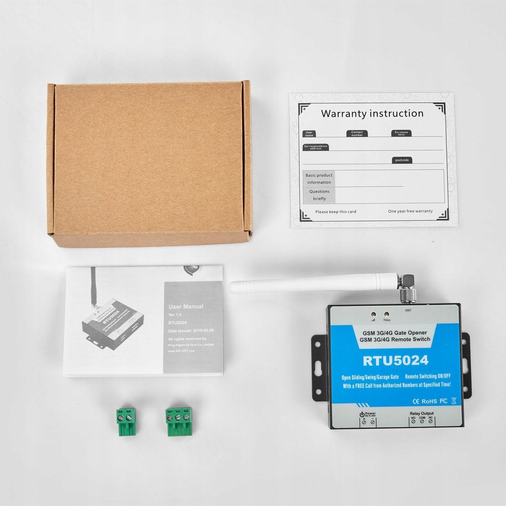 Specification: Output: 3A/40VAC Consumption: 12V input, maximum current 50mA: 3VSIM support Antenna: SMA 50Ω antenna interface RTU5024 (2G-M26): Sold in Ukraine, Ecuador, Belarus, Colombia, Chile. Frequency: 850/900/1800/1900 MHz RTU5024 (2G-208): Not for sale in Ukraine, Ecuador, Belarus, Colombia . Frequency: 850/900/1800/1900 MHz RTU5024 L-AU (4G): Sold in South America, Australia. Frequency point: /4/5/7/8/28@FDD-LTE B40@TDD-LTE B1/2/5/8@WCDMA RTU5024 LA (4G): Sold , Mexico etc. Frequency Point: B2/4/12@FDD-LTE B2/4/5@WCDMA RTU5024 LE (4G): Sold in , Middle East, Africa. Frequency Point: /5/7/8/20@FDD-LTE /40/B41@TDD-LTE B1/5/8@WCDMA RTU5024T (3G): Sold in Australia, New Zealand, Fiji, Thailand. Frequency: 850/2100 MHz RTU5024C (3G): Sold in Chile, Canada, South America, Brazil, Mexico, Argentina. Frequency: 850/1900 MHz RTU5024W (3G): Sold in Myanmar, India, Israel, Ireland, Russia, UK, Belgium, Spain, Austria, Singapore, Sweden. Frequency: 900/2100MHz Size: Size: 82×76×27mm/3.23×2.99×1.06 inch