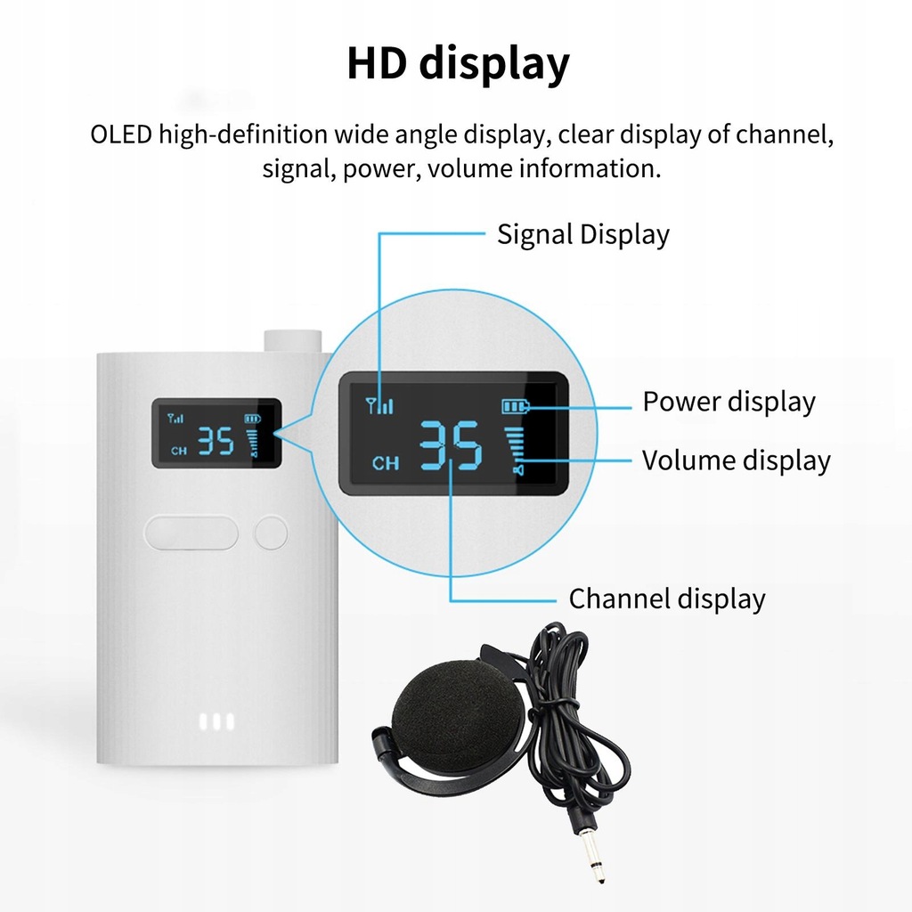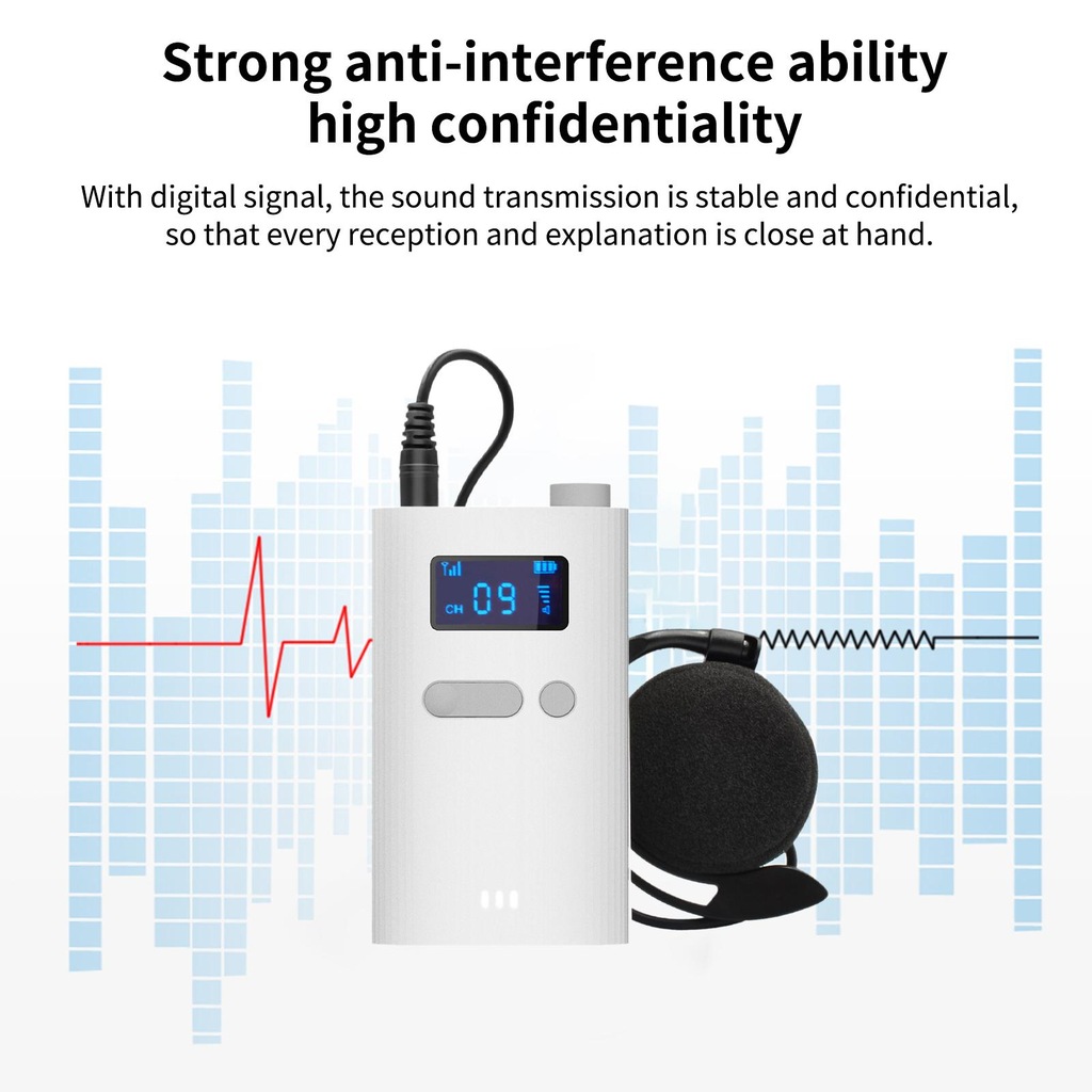 [HD display]:Wireless Tour Guide Voice Audio Transmission System is HD display, OLED high clarity wide angle display, clearly display channels, signals, power, volume information,etc.