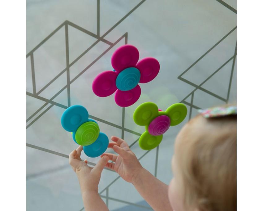 Wirujące Przyssawki to idealna zabawka, przyssie się wszędzie, na podłodze, lodówce czy oknie lub ścianie prysznica - napędzona ruchem małych paluszków, będzie się wesoło kręcić.