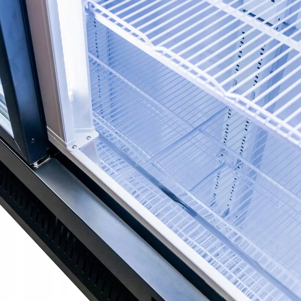 - Drzwi otwierane z podwójną warstwą hartowanego szkła i funkcją samoczynnego zamykania się.