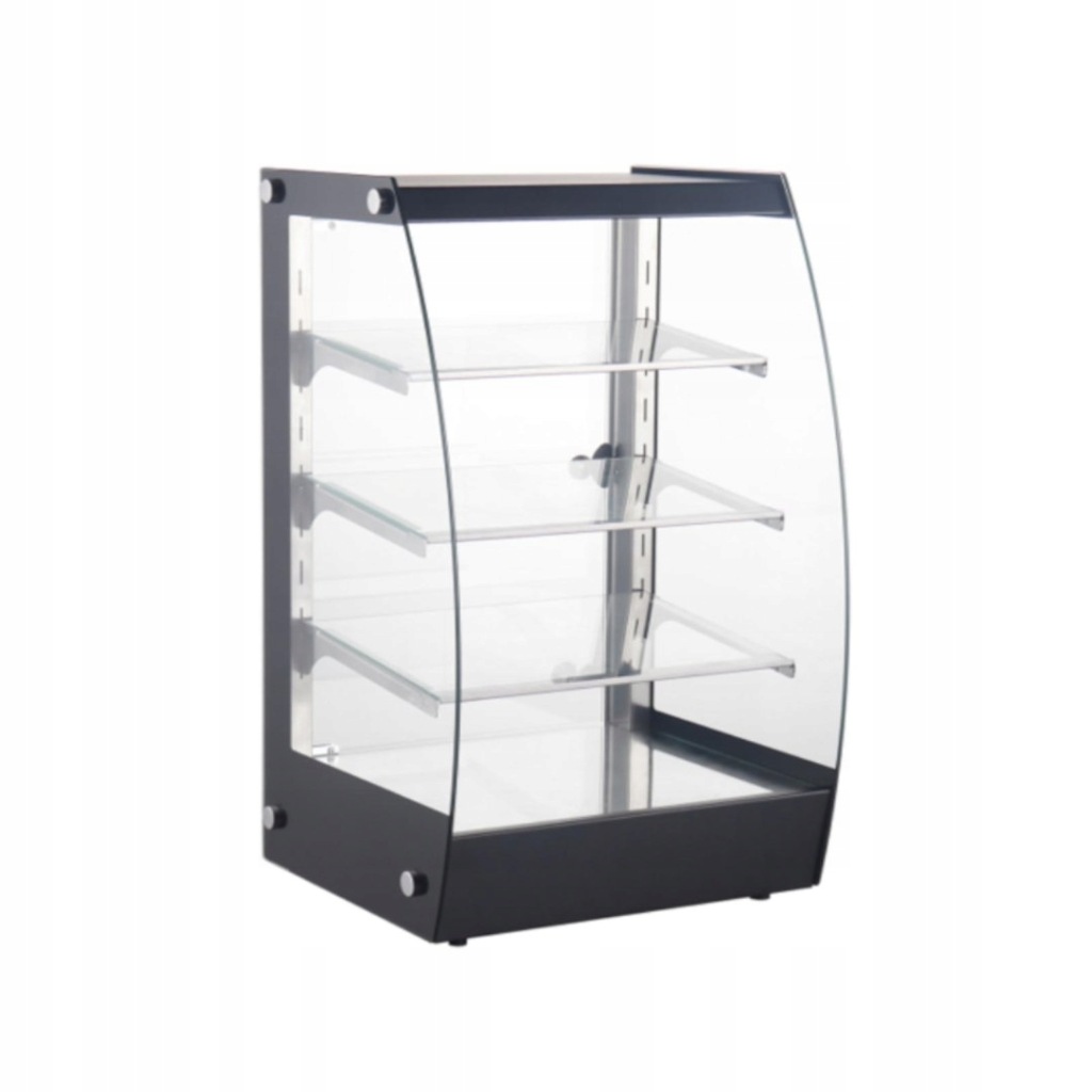 - - trzy przestawne szklane półki nachylone w stronę klienta,