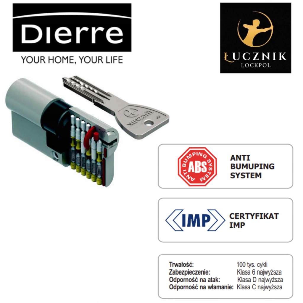 - WKŁADKA OPARTA NA DZIESIĘCIO PINOWYM ZABEZPIECZENIU KODU KLUCZA (3 PINY PASYWNE, 6 PINÓW AKTYWNYCH)