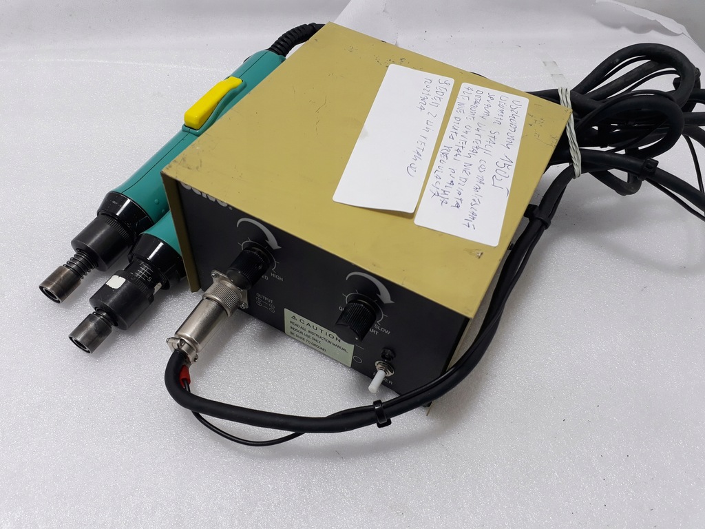 Sprzedaję jako uszkodzony! Wewnątrz stacji coś namieszane, sprawny wkrętak po podłączeniu do stacji nie działa. Dołączone wkrętaki pracują, są cały czas aktywne i nie działa regulacja. jeden z wkrętaków rozłącza.