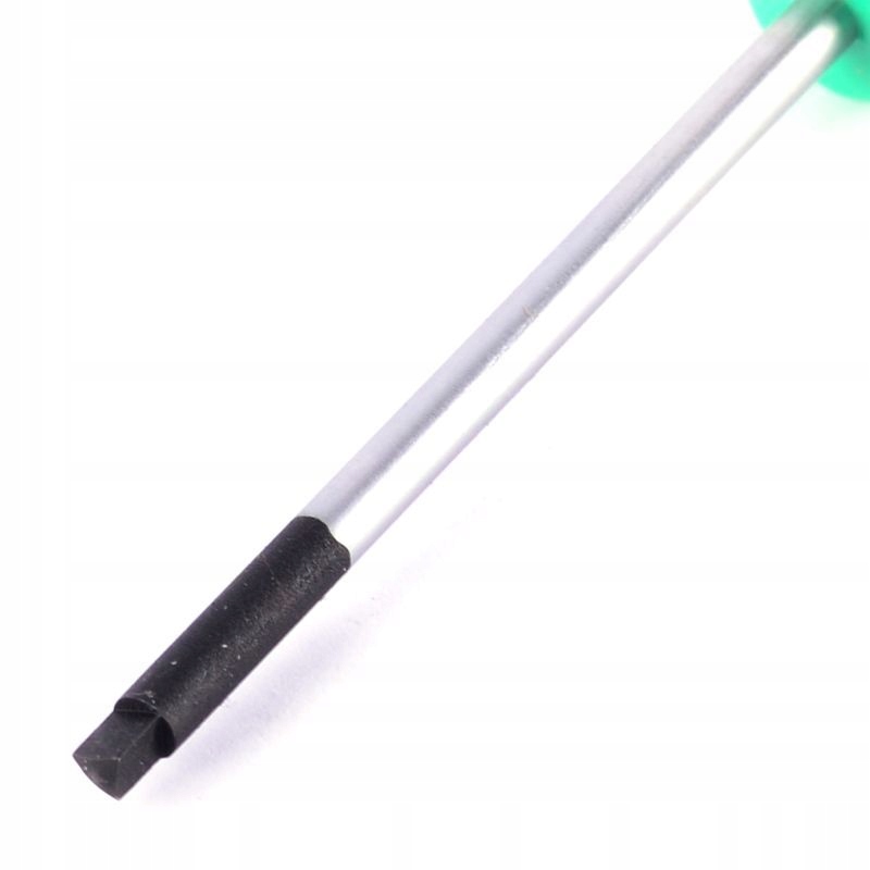 Wkrętak trójkątny z formowanym uchwytem z polipropylenu i obrotowym oparciem, zapewniającym dobry uchwyt i komfortową pracę. Część robocza wykonana jest z odpuszczanej stali chromo-molibdenowo-wanadowej wykończonej zmatowioną końcówką koloru czarnego.