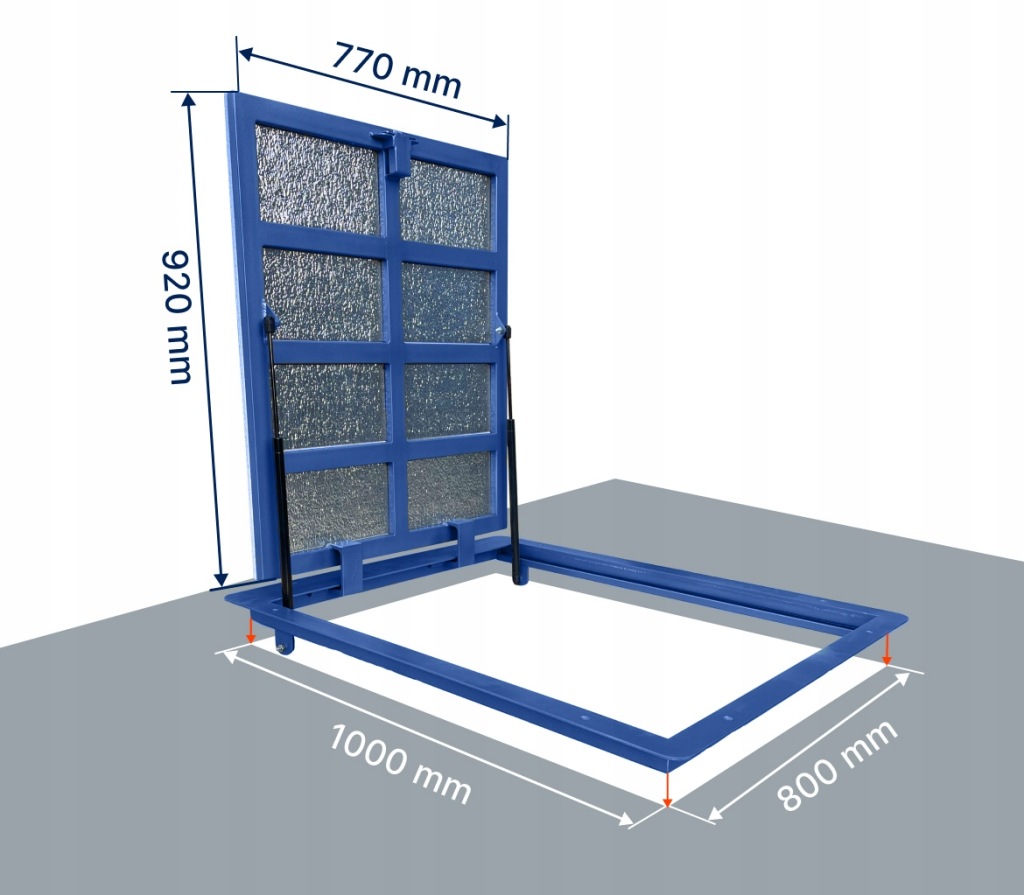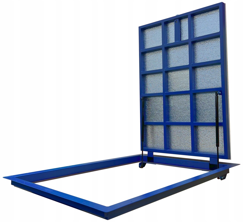 (Na zapytanie wykonujemy włazy podłogowe w każdym rozmiarze. Dodatkowo do wyboru jest możliwość zamontowania siłownika elektrycznego - sterowanie na pilota (koszt dodatkowy))