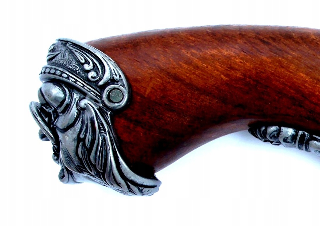 Replika wykonana w połączeniu drewna i metalu - stopu cynku z aluminium. Wykończona elementami metalowymi w kolorze stali. Uwagę zwraca efektowne zakończenie kolby - maszkaron z przywieszonym ogniwkiem. Lufa bogato zdobiona, jak na garłacza przystało, z rozszerzeniem przy wylocie. Pod lufą widoczny wycior, zamontowany na stałe. Replika posiada działający mechanizm zamka. Po naciągnięciu kurka, dusząc na spust, można oddać tzw. suchy strzał. Mechanizm repliki nie wskrzesza iskry!