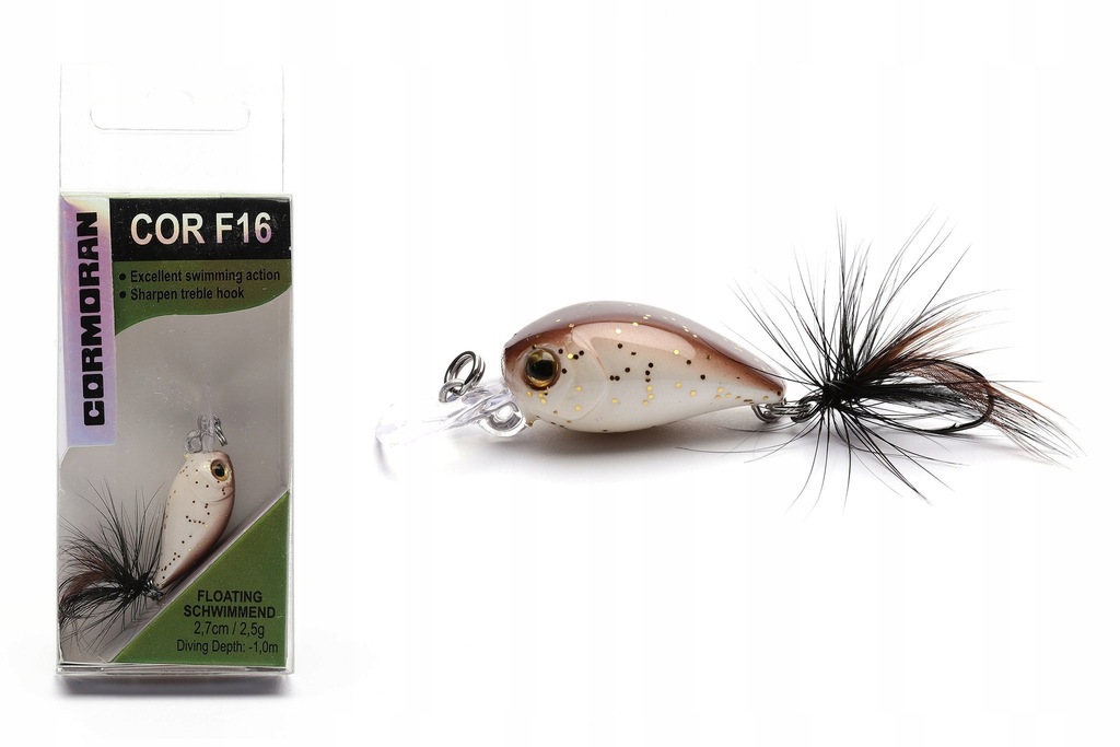 Mini wobler do ultra lekkiego połowu pstrągów, okoni i kleni. Uzbrojony w pojedynczy hak i nęcąco poruszające się w wodzie piórko. Mimo swojego rozmiaru umożliwia dalekie i celne rzuty dzięki opływowym, aerodynamicznym kształtom. Pracuje aktywnie, pozwala na bardzo urozmaiconą prezentację.