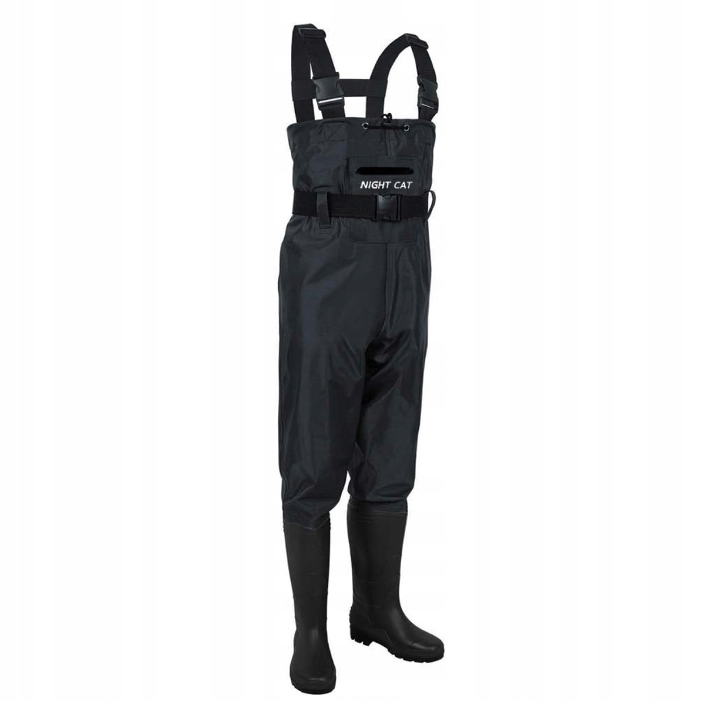 Wodery Spodnie wędkarskie r. M, Winylowe, But r. 44, Night Cat czarny