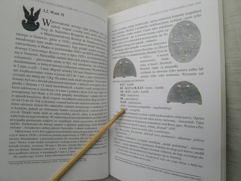 Przedmiotem licytacji jest ciekawa pozycja WOJSKOWE ZNAKI TOŻSAMOŚCI z 2007 roku autorstwa DARIUSZA KASZUBY. Jest to chyba obecnie najbardziej obszerna pozycja o nieśmiertelnikach wojskowych polskich i obcych. Licznie ilustrowana. Stan bardzo dobry. Stron: 102. Format zeszytowy: - 21,3 cm. X - 15 cm. Przykładowa zawartość na skanach.