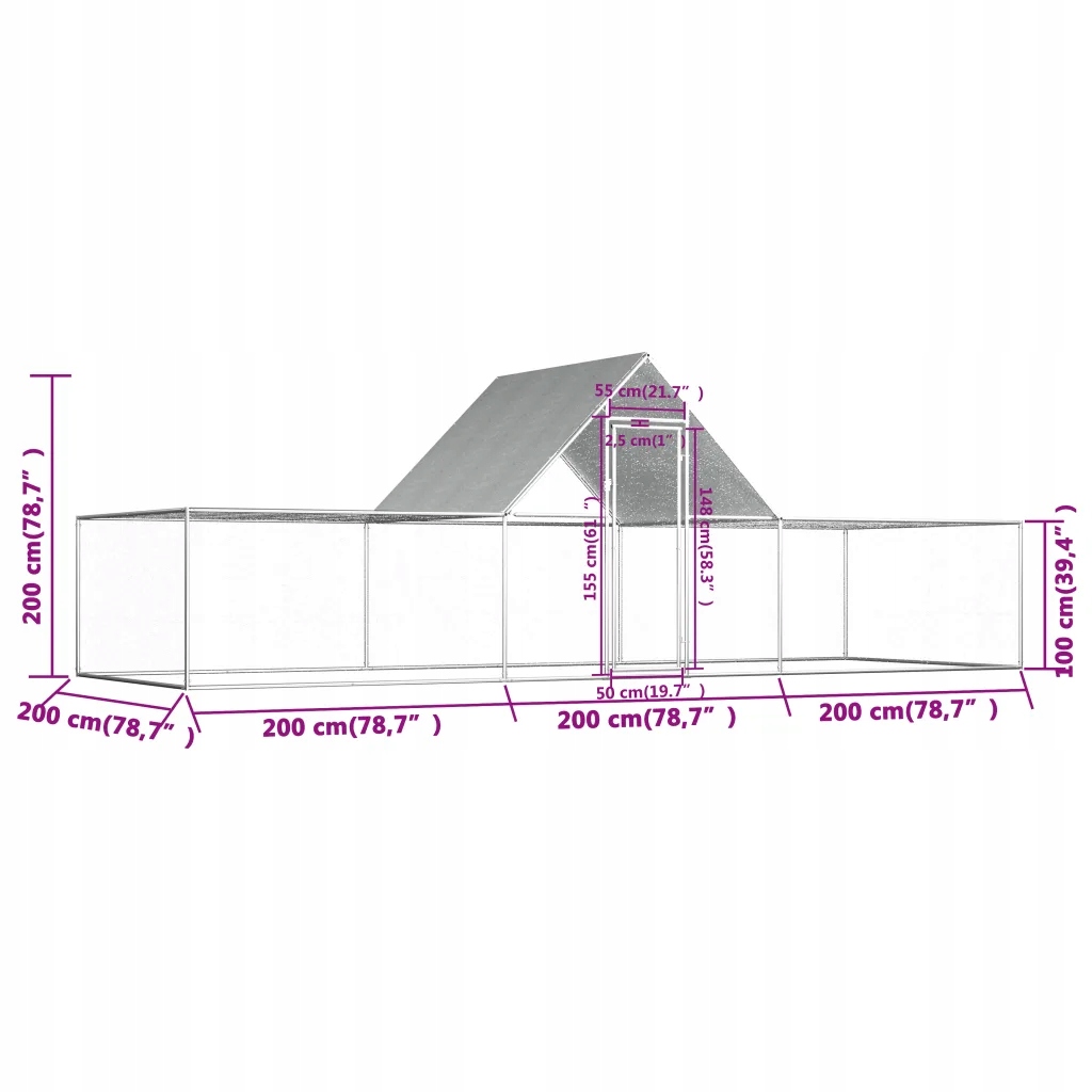 Woliera dla kur, 6 x 2 x 2 m, galwanizowana stal