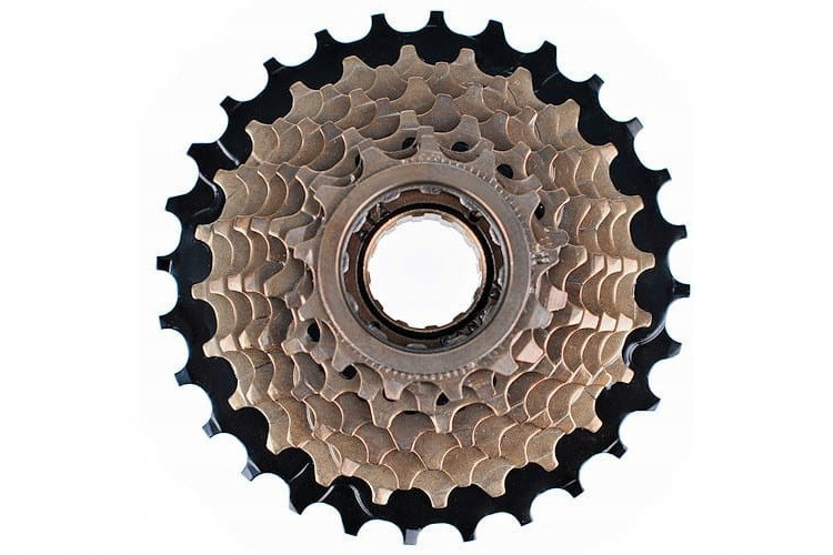 ❇️ wolnobieg: zespół trybów nakręcany jest na gwint znajdujący się na korpusie piasty, stosowany jest w tańszych rowerach z 5, 6 lub 7 przełożeniami bez możliwości wymiany pojedynczych trybów.