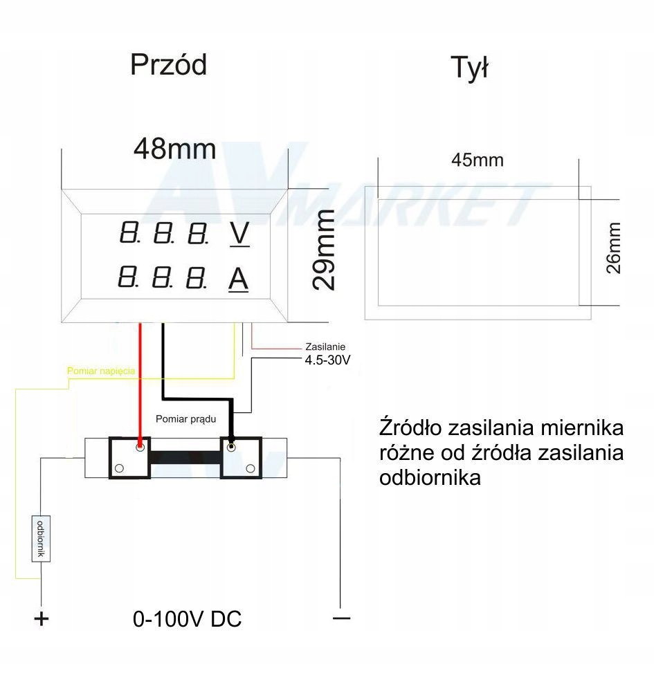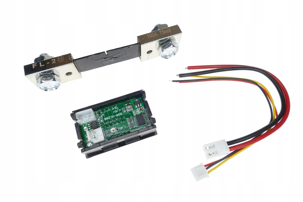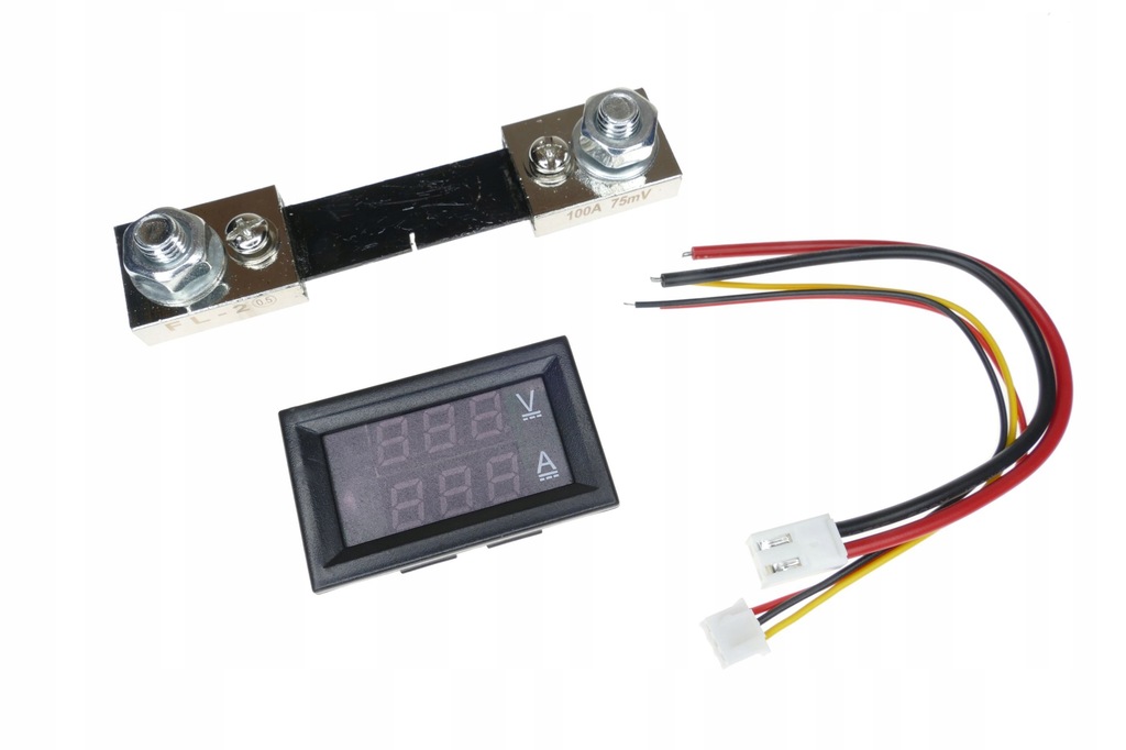 Woltomierz cyfrowy + amperomierz 100V 100A DC wraz z bocznikiem.