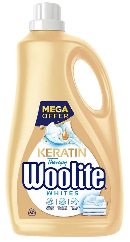 Podczas każdego prania ubrania ulegają niszczącej sile tarcia, co prowadzi do utraty kształtu, koloru i mechacenia. Aby temu zapobiec, Woolite stworzył serię płynów do prania Keratin Therapy. Aktywna Formuła z dodatkiem keratyny, znanej dotychczas głównie z profesjonalnych kosmetyków do włosów, skutecznie chroni i wygładza włókna. Wszystko po to by dłużej cieszyć się ulubionymi ubraniami!Twoje białe ubrania żółkną lub szarzeją z każdym praniem? Z płynem do prania Woolite zatrzymasz blask bieli na dłużej! Nowy Woolite Keratin Therapy to płyn do codziennego prania wszystkich rodzajów ubrań, który sprawia, że Twoje jasne ubrania dłużej wyglądają nieskazitelnie.Płyn do prania, który nie tylko czyści i chroni Twoje białe ubrania, ale również ożywia ich biel, aby wyglądały jak nowe.Jego unikalna formuła zawiera: 1. Wzmacniacz Bieli - ożywia olśniewającą biel Twoich ubrań, pranie po praniu. 2. Technologię Grime Catching - aby zapobiegać osadzaniu się brudu podczas prania na Twoich ubraniach. 3. Nie zawiera agresywnych składników - aby pomóc chronić tkaninę.; Uwaga. Zawiera: Methylisothiazolinone. Może powodować reakcję alergiczną skóry. Działa drażniąco na oczy. Chronić przed dziećmi. Stosować rękawice ochronne. W PRZYPADKU KONTAKTU ZE SKÓRĄ: Umyć dużą ilością wody. W PRZYPADKU DOSTANIA SIĘ DO OCZU: Ostrożnie płukać wodą przez kilka minut. Wyjąć soczewki kontaktowe, jeżeli są i można je łatwo usunąć. Nadal płukać. W przypadku utrzymywania się działania drażniącego na oczy: Zasięgnąć porady/zgłosić się pod opiekę lekarza. W PRZYPADKU POŁKNIĘCIA: W przypadku złego samopoczucia skontaktować się z OŚRODKIEM ZATRUĆ/lekarzem. Zawartość/pojemnik usuwać do odpowiednio oznakowanych kontenerów zgodnie z lokalnymi, regionalnymi, krajowymi i międzynarodowymi przepisami. UFI: UEW2-W0FC-U00R-C475