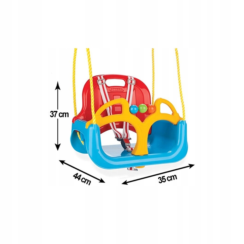 Dzięki zdejmowanej osłonie na nóżki i zdejmowanemu oparciu huśtawka będzie idealna również dla starszych dzieci. Produkt ma 3 opcje użycia: huśtawka dla dziecka z oparciem i osłoną na nóżki, huśtawka z oparciem lub huśtawka bez oparcia. Z biegiem czasu gdy dziecko rośnie, części huśtawki można w łatwy sposób demontować. Pasy bezpieczeństwa zapewnią bezpieczną zabawę.