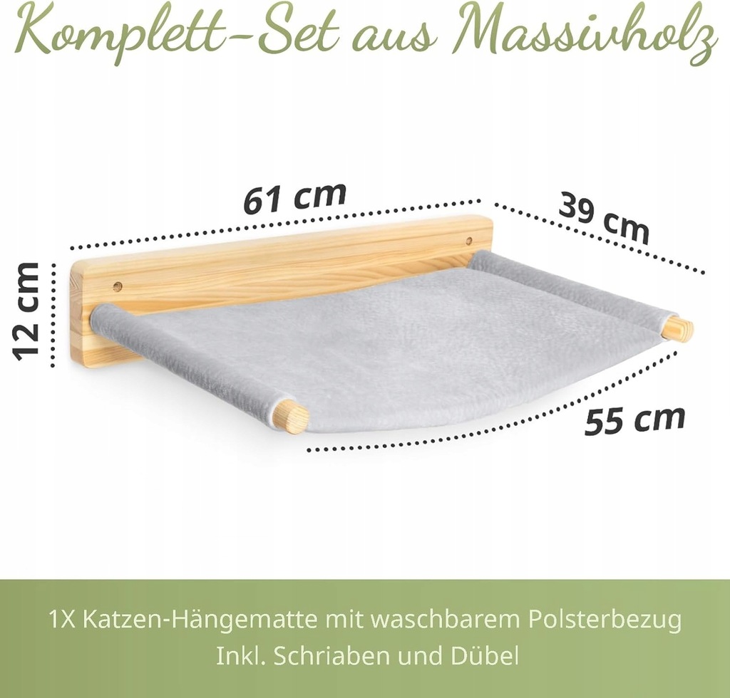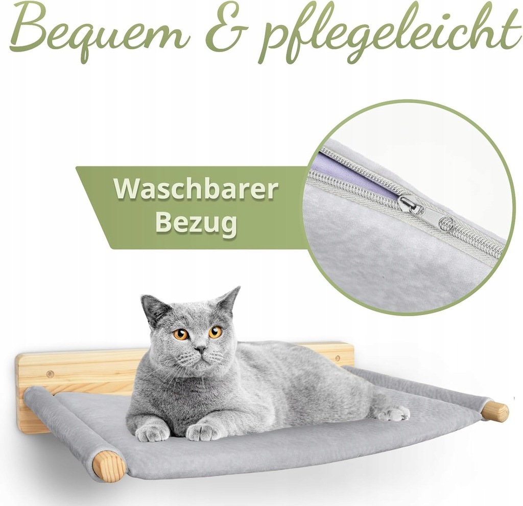WOOWOOD® Szara Hamakowa Półka dla Kota [XL i Stabilna] – Drewniana Ściana Wspinaczkowa dla Kotów | Zestaw 3w1 | Półka | Leżanka | Platforma