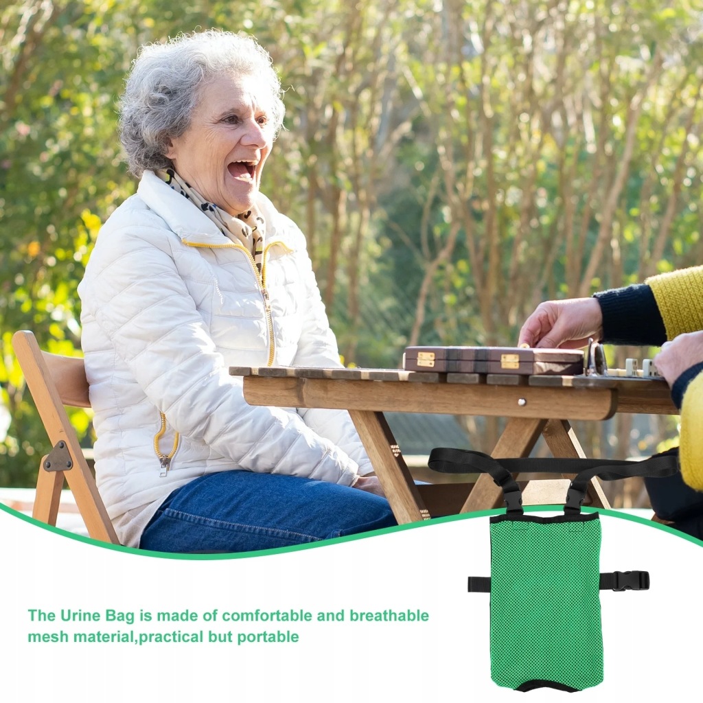 Worek na mocz wykonany jest z wygodnego i oddychającego materiału siatkowego, praktyczny, ale przenośny.