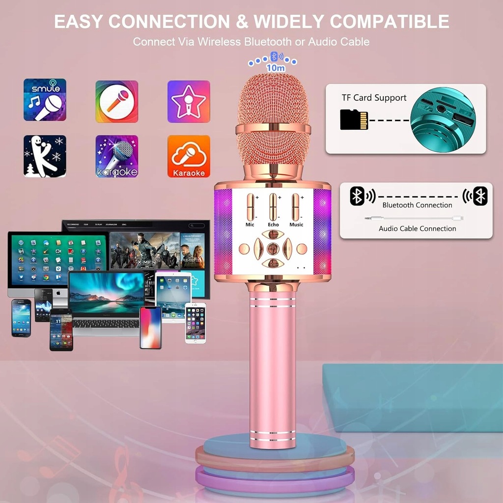 ✅【Najlepszy prezent dla dzieci i dorosłych】 Bezprzewodowy mikrofon do karaoke Bluetooth jest łatwy do trzymania i jest świetnym prezentem dla dzieci, przyjaciół lub rodziny. Nadaje się na urodziny rodzinne, imprezy, wesela, uroczystości, podróże, do samochodu i wszędzie tam, gdzie chcesz grać i śpiewać.