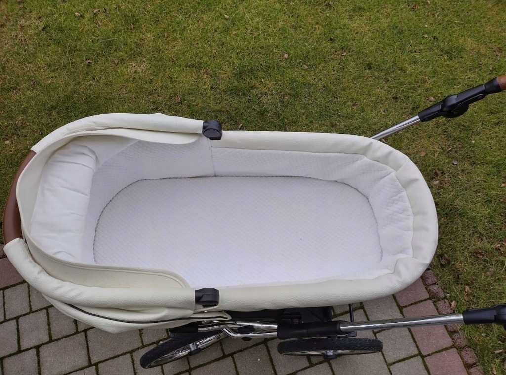 Miękko wyścielona gondola Genua z materacykiem zapewni komfort dziecka, dzięki regulowanemu zagłówkowi oraz systemowi wentylacji wbudowanemu w jej dno