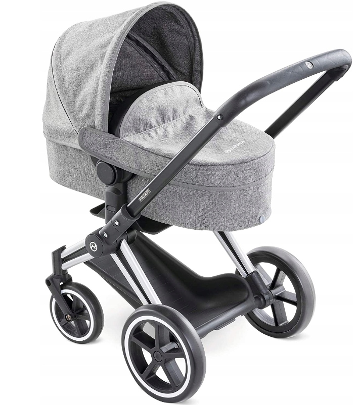 Ten śliczny, realistyczny, wielofunkcyjny wózek dla lalek stylizowany jest na wózkach Cybex Priam o nowoczesnej stylistyce, które spotykamy w codziennym życiu. Wózek jest niezwykle stabilny, a skrętne przednie kółka zapewniają łatwość i wygodę podczas prowadzenia. Wózek daje dziewczynkom możliwość urozmaiconej zabawy, dzięki szybkiej zmianie z wózka głębokiego w spacerówkę. Wystarczy podpiąć materiałowe boki gondoli i zmienić ułożenie oparcia aby szybko zmienić ją w siedzisko spacerowe. Dodatkowo gondola jest wypinana i może służyć jako nosidełko lub łóżeczko. Spacerówkę wyposażono w pałąk i pas bezpieczeństwa, gondolę natomiast w pokrowiec i opuszczany daszek. Stelaż wózka posiada wygodną rączkę oraz koszyczek na drobiazgi. Gondola i siedzisko spacerowe montowane jest przodem i tyłem do kierunku jazdy. Wózek przeznaczony dla lalek do 42 cm wysokości (lalka nie jest w zestawie).