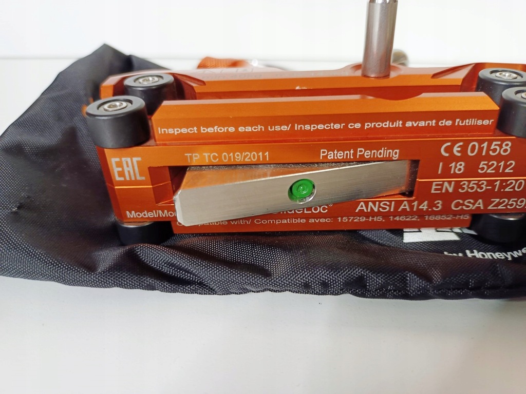 Posiada element pochłaniający energię oraz automatyczny karabinek z krętlikiem.