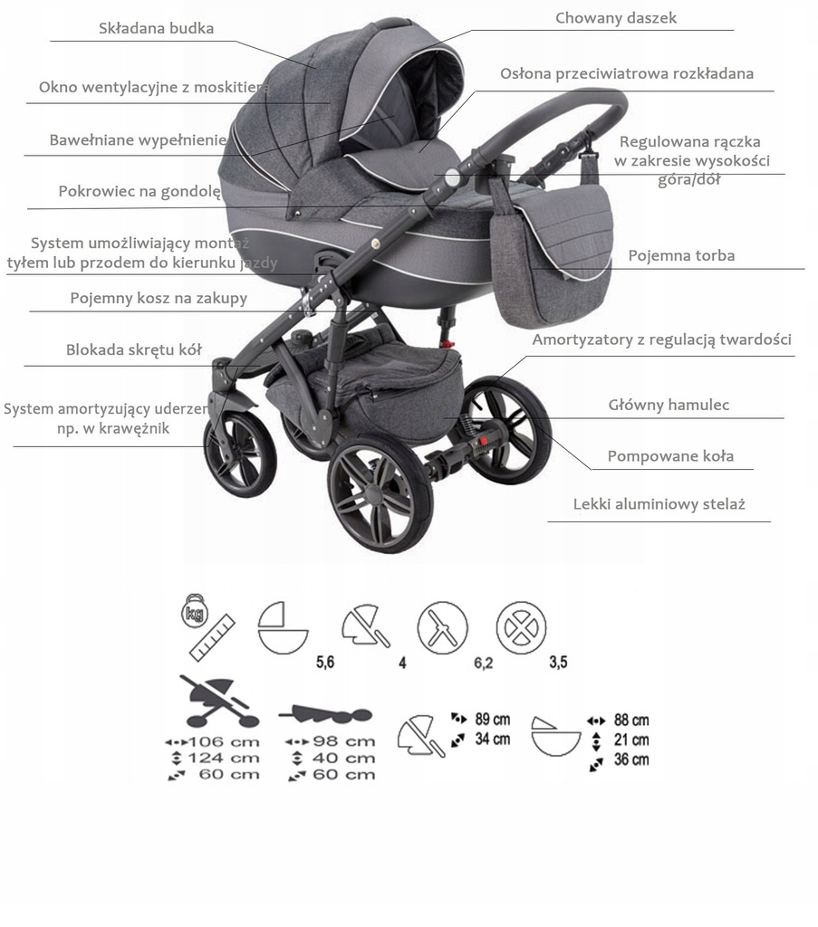 - dużą pojemną torbę pod kolor tapicerki wózka,